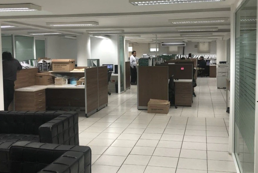 7 oficinas, sala de juntas, áreas comunes, bodega y baños para hombres y mujeres.